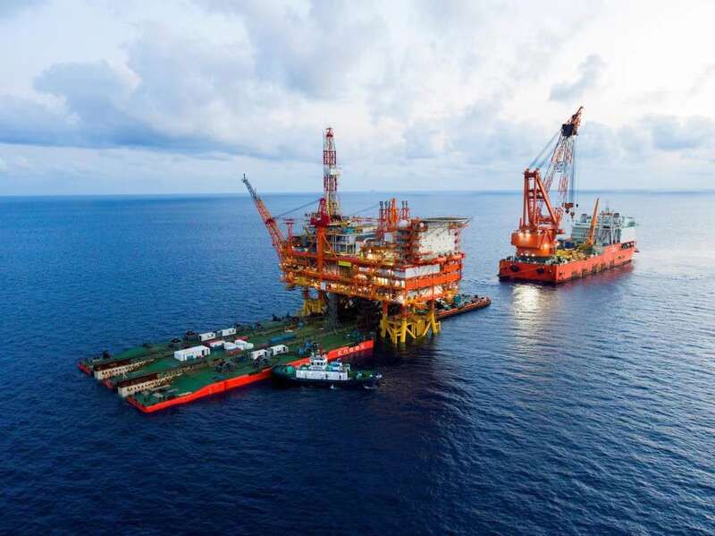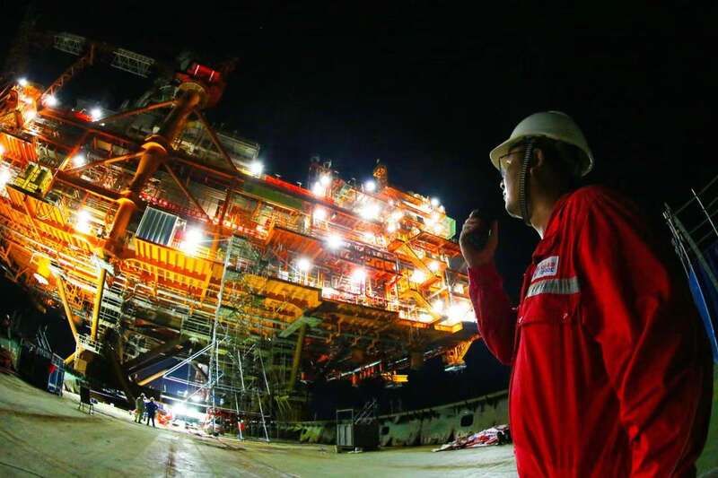 由于平台上部组块重量超过全球海上浮吊的能力极限,中国海油投入亚洲最大海洋工程驳船“海洋石油229”,采用浮托技术进行海上安装。
